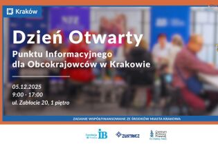 W piątek, 5 grudnia, Fundacja IB Polska zorganizuje ostatni w tym roku Dzień Otwarty Punktu Informacyjnego dla Obcokrajowców. Konsultacje odbędą się w godz. 9.00–17.00 w Centrum Wielokulturowym przy ul. Zabłocie 20 (I piętro) w budynku Zabłocie Space.