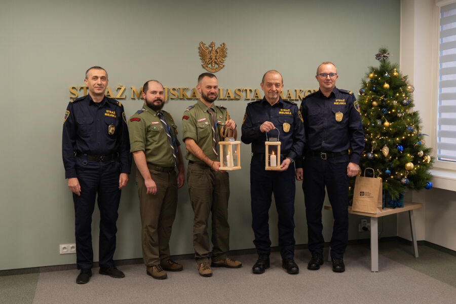 Betlejemskie Światło Pokoju, symbol pojednania i wzajemnego zrozumienia między narodami, trafiło w tym roku także do Straży Miejskiej Miasta Krakowa. Przekazali je przedstawiciele Związku Harcerstwa Polskiego: hm. Artur Walkowiak – komendant chorągwi ZHP, oraz pwd. Radosław Kubowicz – skarbnik chorągwi ZHP, kontynuując tradycję trwającą nieprzerwanie od 1986 roku.